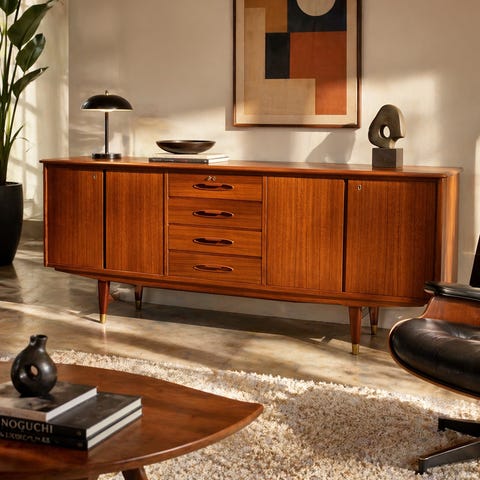 Vintage nydelig skap/tv-konsoll i massiv teak med messingdeler. Det er nytt og nesten i perfekt stand, men har et lite hull på baksiden på grunn av transport. Så prisen er nå redusert.