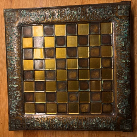 Vintage Håndlaget Forma Sjakkbrett i messing/kobber med patina selges