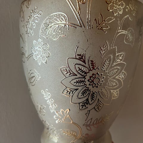 pen liten potte i hvitt og sølv