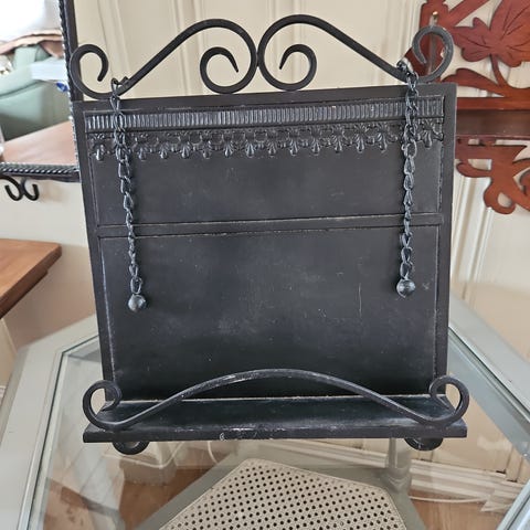Entresett som består av glass plate, oppheng/hylle og to stk kleshengere i smi jern selges. Må hentes og ny pris.