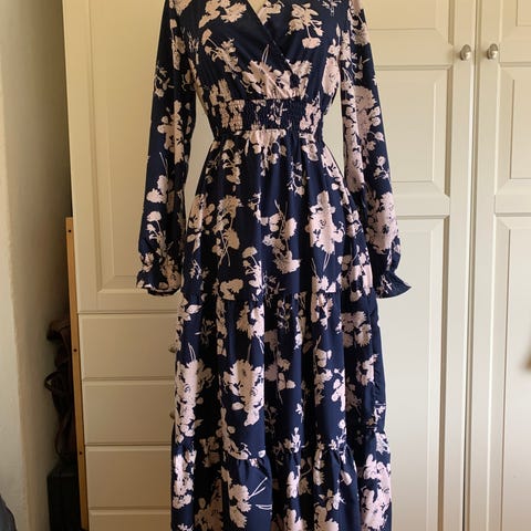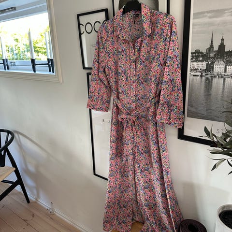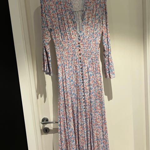 En nydelig, lang sommerkjole, AMERICAN DREAMS , str M , veldig feminin , fremhever former, flotte detaljer , deilig stoff , 2 lommer på sider