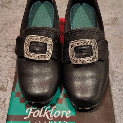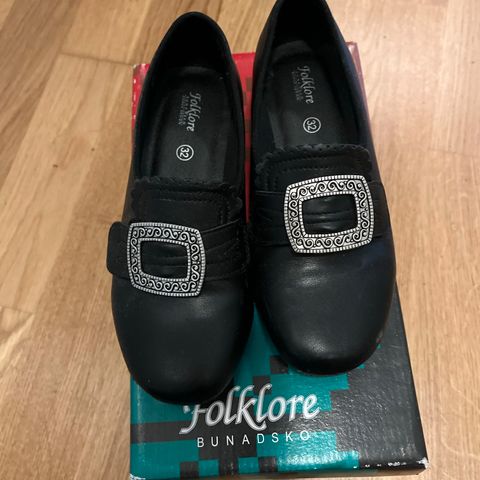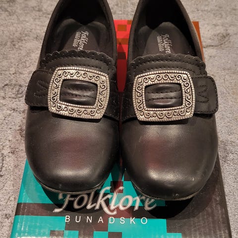 Pent brukt Forklore bunadsko, str 32. 2,9 cm hæl. En liten prikk foran på den ene tåa. Brukt en 17. mai.