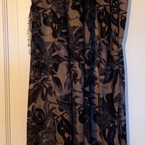 Skjerfet er det kun tatt av lappen. Fremstår som nytt. Mykt stoff.
