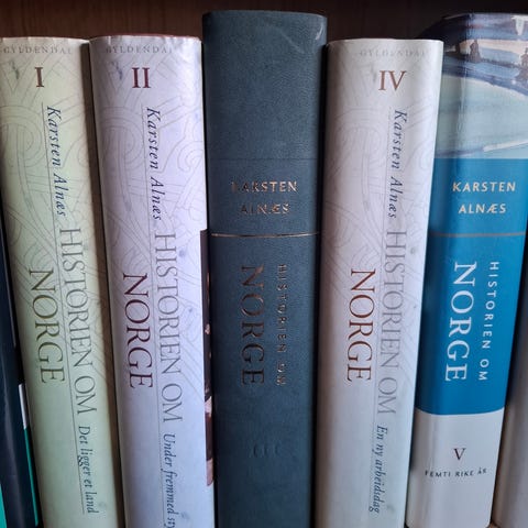 Bind 1-4 av serien «Historien om Norge» av Karsten Alnæs