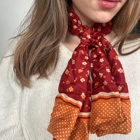 Nydelig thai 100% silke skjerf i oker og hvit farge. Flott som gave.