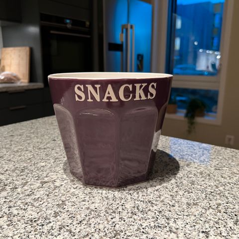 Stor snacksbolle i grå selges. Perfekt til ships og popcorn. Veldig lite brukt, selges for å frigjøre litt plass. Kan hentes i Sarpsborg, sendes via Postnord for 69 kr eller via Fiks ferdig.