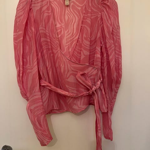 Selger denne fine, mønstrede toppen eller blusen. Den er i str. L, men vil si den også passer fint til en str. M, som jeg selv er, dersom man ønsker at den skal sitte litt løsere. Kule detaljer og knapper i gull, fin til både hverdags og pyntede anledninger.