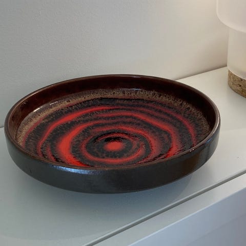 Waechtersbach, keramikkfat, mid-century modern, vintage, tysk design, 1960-tallet, retro, dekorasjon, Vest-Tyskland, samleobjekt, oransje glasur, abstrakt kunst, retrofat, keramikk, interiør, moderne design, vintage design, borddekor, keramikk kunst, tysk keramikk, stilig fat, unikt design, samleobjekt, glasert keramikk, antikvitet, dekorativt fat, moderne kunst, vintage keramikk, tysk kunst, interiørdesign, bordpynt.