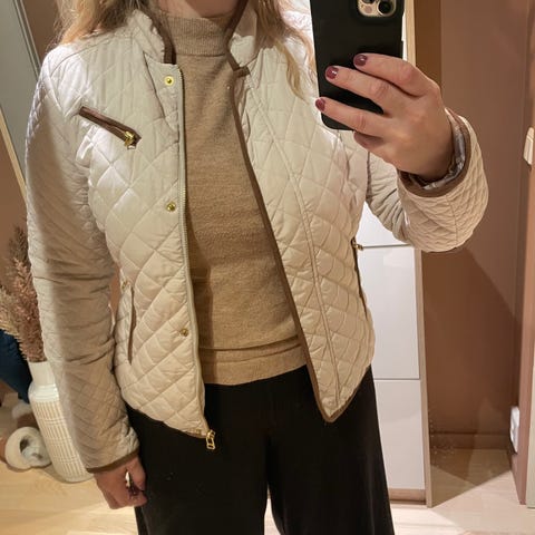 Anvendelig jakke med mange fine detaljer. Passer fint til vår og høst og tåler regn. Jakken er brukt en gang. Ny pris kr 1499.