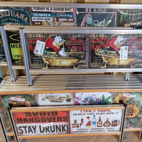Fra mer enn 100, nå bare 40 unike skilt å velge mellom, perfekte for/til å gi baren, badet, stua, soverommet, eller garasjen et autentisk vintage preg eller som en gave til en god venn.