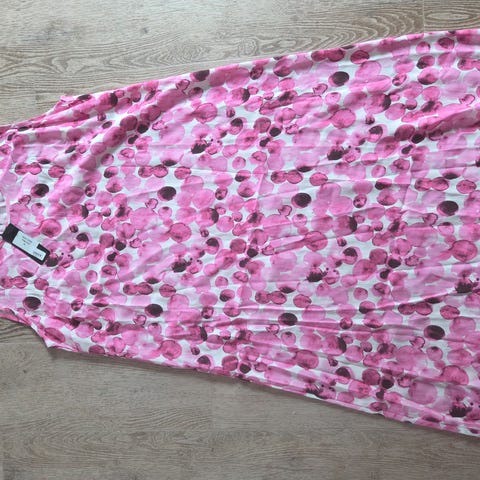 Pen sort kjole med kontrastmønster med store roser, både fremme og bake. Brukt 2 ganger. Str XL. Merke Mongul.
