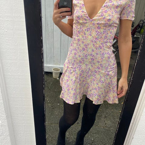 Elegant hvit kjole fra ICHI i str. 40 med feminine puffermer. Lett og behagelig modell som passer perfekt til både sommerfester, hverdagsbruk og penere anledninger. Enkel å style med sandaler eller hæler.