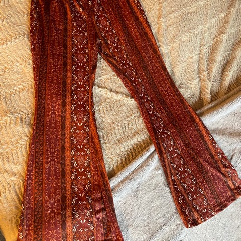Selger ei brun/lilla vintage bukse fra 70-tallet. Vid modell, livvidde ca 74 cm, kan syast ut ca 3-4 cm. Har vore innsydd tidlegare. Unisex modell?