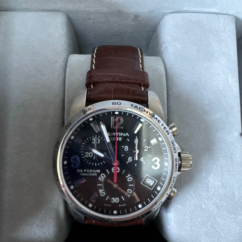 Urskive: Sort med selvlysende markerer arabiske siffer og indeksmarkeringer, selvlysende visere