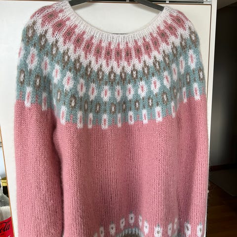 Nydelig myk genser selges fordi rosa er ikke min farge. Sikkert noe mohair i den da den er veldig fluffy. Jeg strikker ikke selv så derfor kan ikke jeg fortelle eksakt hvilket garn som er brukt. Str. S/M. Veldig skjønn 💗 frakt i tillegg