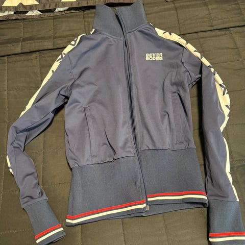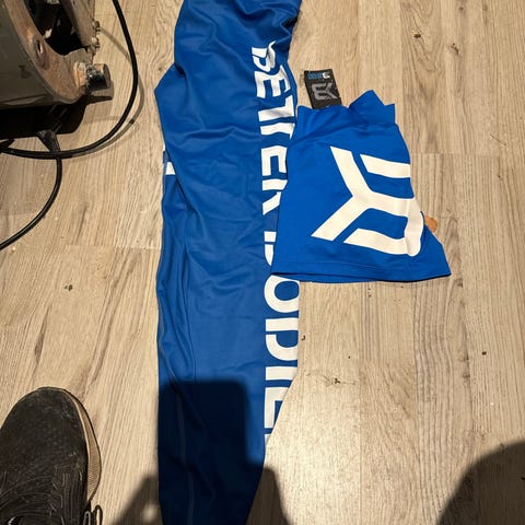 Better Bodies tights og jakke i blå velour str M. Prøvd 1 gang er for liten til meg. Selges for kr 400,-