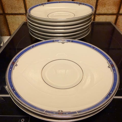 Glassene har gulldekor, både i mønster og rand på glasset.