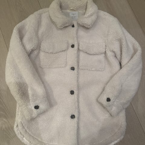 Varm Teddy skjortejakke med for, Alle knapper virker. Trykknapper i sidelommer, trykknapper i brystlomme, knapper i front og knapper i ermer.