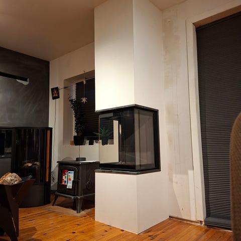Flott peisinnsats med hevedør. Stort innsyn til flammene og en meget godt innsyn