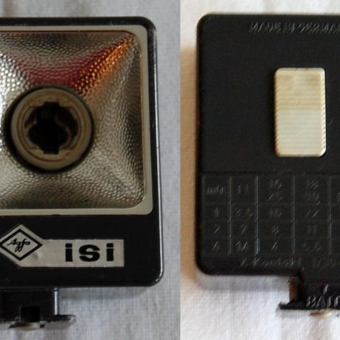Agfalux Ci blits kubeholder og blitskabel fra 1975