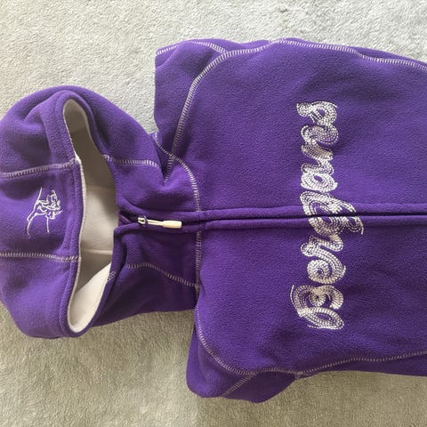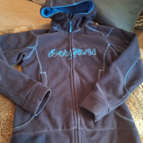 Tykk og varm fleecejakke søker ny turvert. Har vært mye på tur med bål og har fått litt gnistflekker men ingen synlige hull.