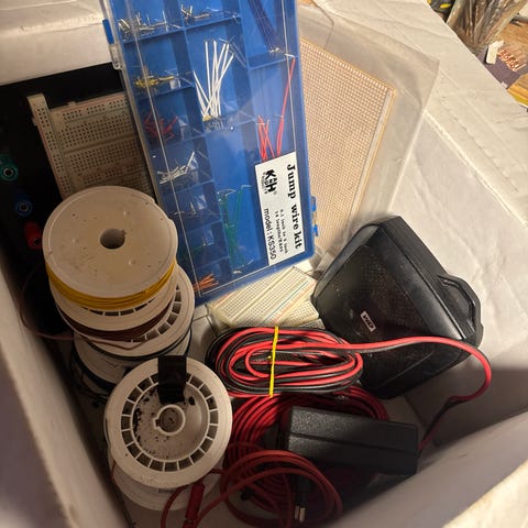 Hjemmelagd verktøykasse med løftehanker og mulighet for å låses. Inni er det to etasjer og holder til håndsag i lokket.