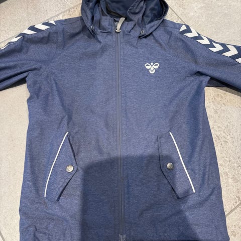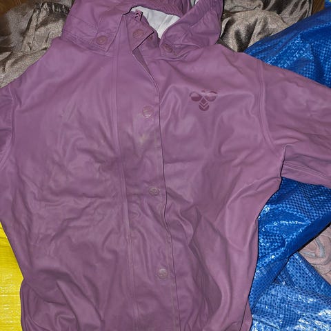 Pent brukt Hummel regnjakke i str 110, selges. Kun brukt som reserve regn jakke og ikke i barnehagen.