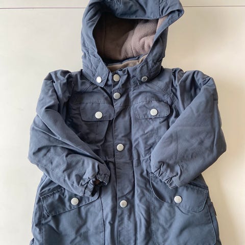 Brukt mørkeblå vinterjakke fra MiniATure i str 122. Modellen heter Wicki. Endel brukt, men mye bruk igjen. Ingen flekker