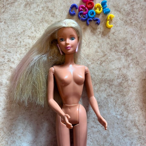Håret til dukka er veldig flokete (se bilde).
