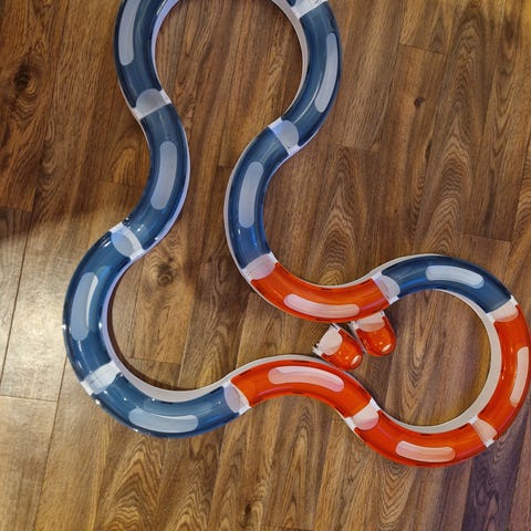 Jeg selger denne fine kjørebanen til katt! Det er to pakker, altså to baner, som jeg har mikset sammen. De kan settes sammen eller bygges til to individuelle baner(som vist på bilde).