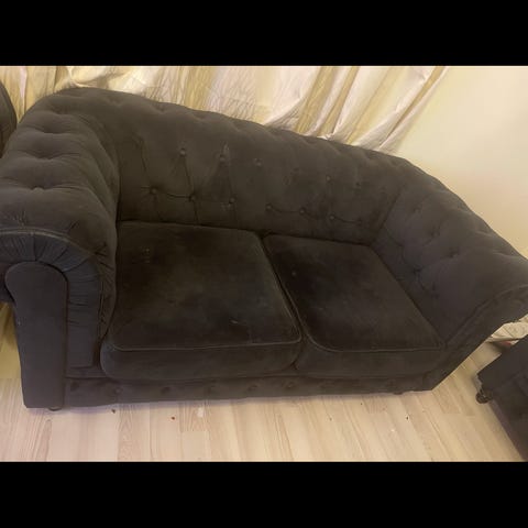 Pent brukte Bella 2-seters og 3-seters sofaer i mørk grå velour