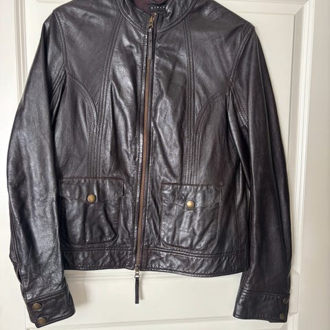 En imitert skinnjakke fra Sisley i str S. Pent brukt. Denne er fin til å bruke over både kjoler, bluser og T-skjorter.