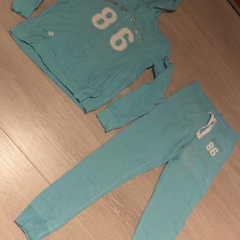 Lyseblå joggedress fra Hm str.158-164 og solhatt