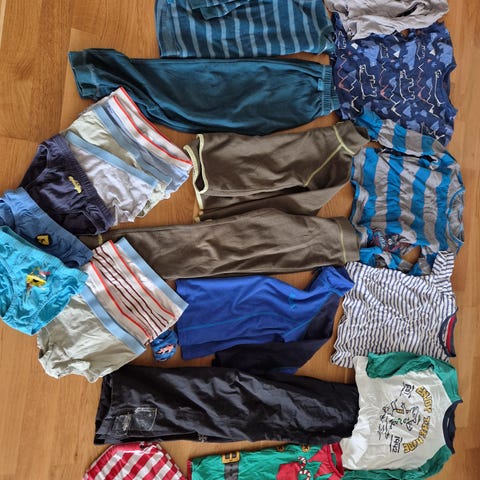 Den blå joggebuksa er reparert (var en liten rift)