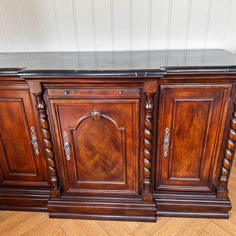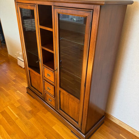 Barskapet ble kjøpt i en treskjærer fabrikk i Chiang Mai i 1989. Firmaet spesialiserte seg på å produsere eksklusive møbler på bestilling fra velstående personer i hele verden. På en rundreise i Thailand i 1989 var vi innom denne håndverksbedriften. Min far forelsket seg i håndverk han så, og fikk designet dette fleksible , men massive barskapet, som ble håndlaget og dukket opp på havnen i Oslo, 12 måneder seinere. Han betalte ca. NOK 40000 for det den gangen. Det står på hjul og er tungt.