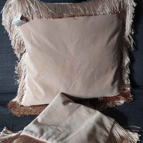 Grå/beige putetrekk i grovt stoff