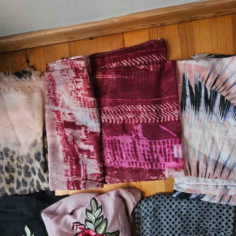 Store fine skjerf pent brukte. I god stand, ingen anm. Samlet kr 250 + porto
