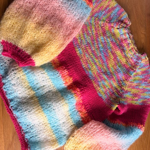 Ny hjemmestrikket høyhalset, oversize ,fargerik myk genser. Str S/M . Ullvask 30 grader. 590 kr