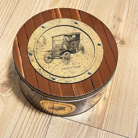 2 Gamle bokser med motiv av Veteranbiler