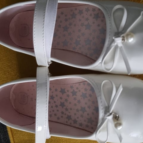 Helt nye brudepike sko som kun er prøvd på barna selges da de ikke passet noen av dem.. kjempe fine sko i str 22 og 30!
