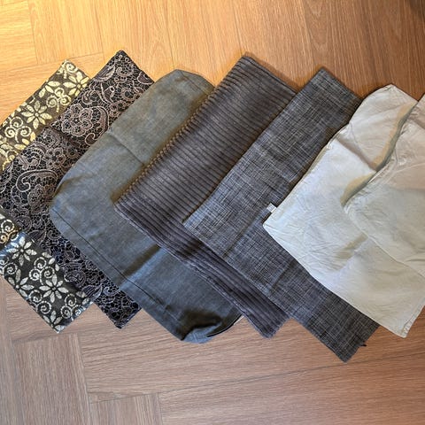 Pakke med bordbrikker, diverse størrelser og mønstre