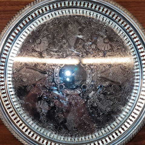 Nydelig vintage serveringsbrett i sølvbelagt kopper fra Myrvold. Selges da det ryddes i hjemmet.