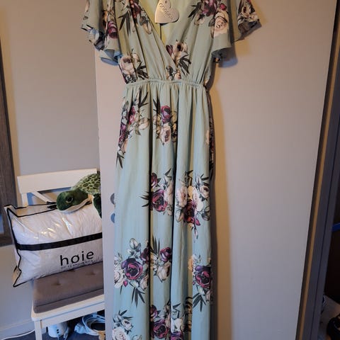 Kjole fra Bubbleroom ved navn «Butterfly Sleeve Midi Dress» i str 38. Fargen er «dusty green». Kun brukt en gang, og fremstår derfor som ny. Førpris: 899. Første bilde er lånt av bubbleroom.