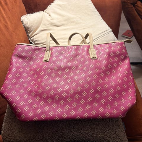 Lite brukt skulderveske fra Don Donna. Meget god stand. Ingen bruksmerker. Ca. 35 sm høy, ca. 41 cm bred. Hank ca. 61 cm. Veldig praktisk veske med lett tilgjengelige lommer både foran og bak. Selges da jeg har for mange vesker.