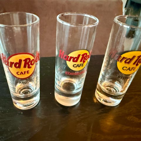 Selger 1 stk Hard Rock Café London glass og 1 stk Planet Hollywood New York glass for 50,- per stk.