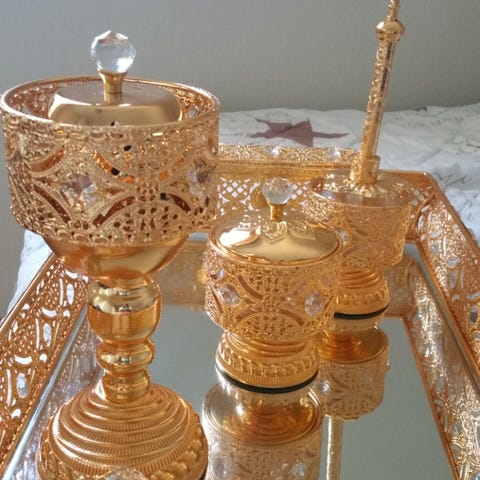 2 teglass fra Tyrkia, med skjeer, selges samlet.