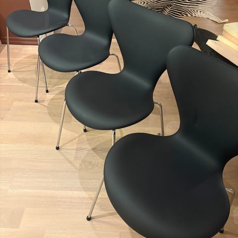 2 stk Syverstoler selges. Designet av Arne Jacobsen, produsert av Fritz Hansen 2020.