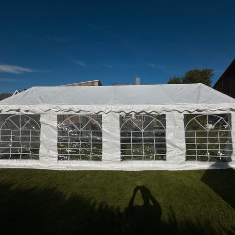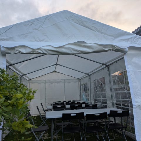 Stort og flott partytelt til leie. Hele 5*8m. (Har også bord/stoler/soundbox)