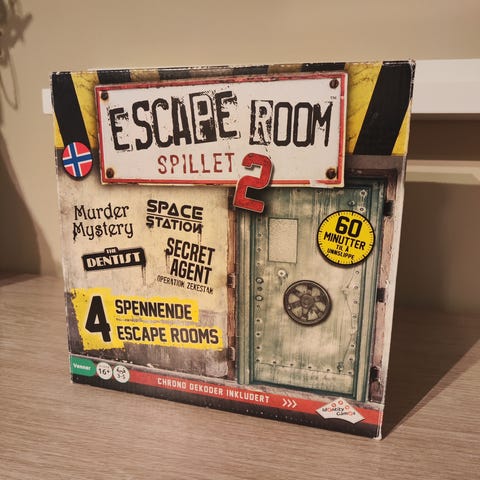 4 forskjellige escape room spill. Brukt, men de delene som er "ødelagt" i forbindelse med å løse oppdrag er erstattet og spillet er derfor som nytt.