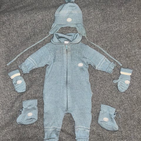 Lillelam grønn ull dress og lue str74